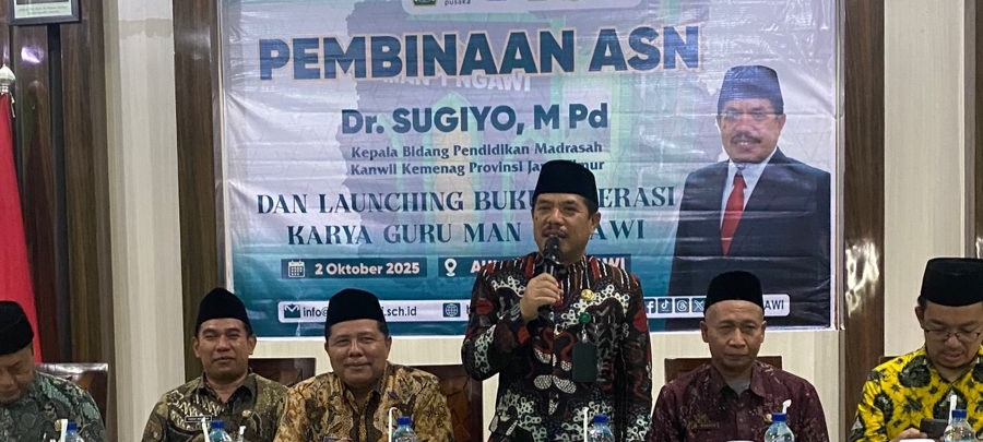 MAN 1 Ngawi menggelar kegiatan Pembinaan ASN bersama Dr. Sugiyo, M.Pd, Kepala Bidang Pendidikan Madrasah Kanwil Kemenag Provinsi Jawa Timur, bertempat di Aula MAN 1 Ngawi. Kegiatan ini sekaligus dirangkaikan dengan Launching Buku Literasi karya guru MAN 1 Ngawi, sebagai wujud nyata komitmen madrasah dalam mengembangkan budaya literasi di lingkungan pendidikan.