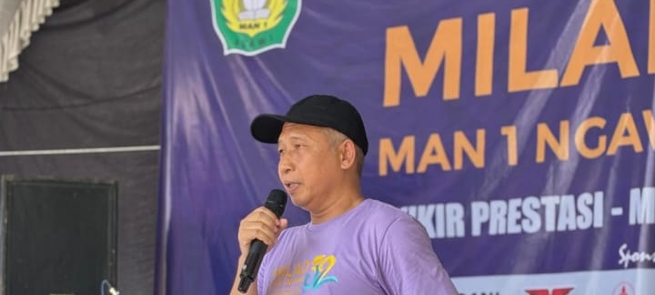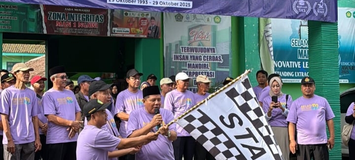 MAN 1 Ngawi memperingati Milad ke-32 dengan penuh semangat dan kebersamaan pada Kamis, 25 Oktober 2025, mulai pukul 07.00 WIB hingga selesai. Mengusung tema “Mengukir Prestasi, Mempererat Silaturahmi”, kegiatan ini diikuti oleh seluruh siswa kelas X, XI, dan XII, bapak-ibu guru, karyawan, serta tamu undangan dari SMP dan MTs se-Kabupaten Ngawi. Acara dibuka dengan jalan sehat yang diawali pelepasan 100 balon oleh Kepala Kantor Kementerian Agama Kabupaten Ngawi, Bapak Dr. H. Moh. Ersadt, M.H.I., didampingi Kepala MAN 1 Ngawi, Bapak H. Maskur, S.Pd.. Keduanya juga bersama-sama melakukan pemotongan tumpeng sebagai wujud rasa syukur atas usia madrasah yang ke-32 dan prestasi yang terus diraih.